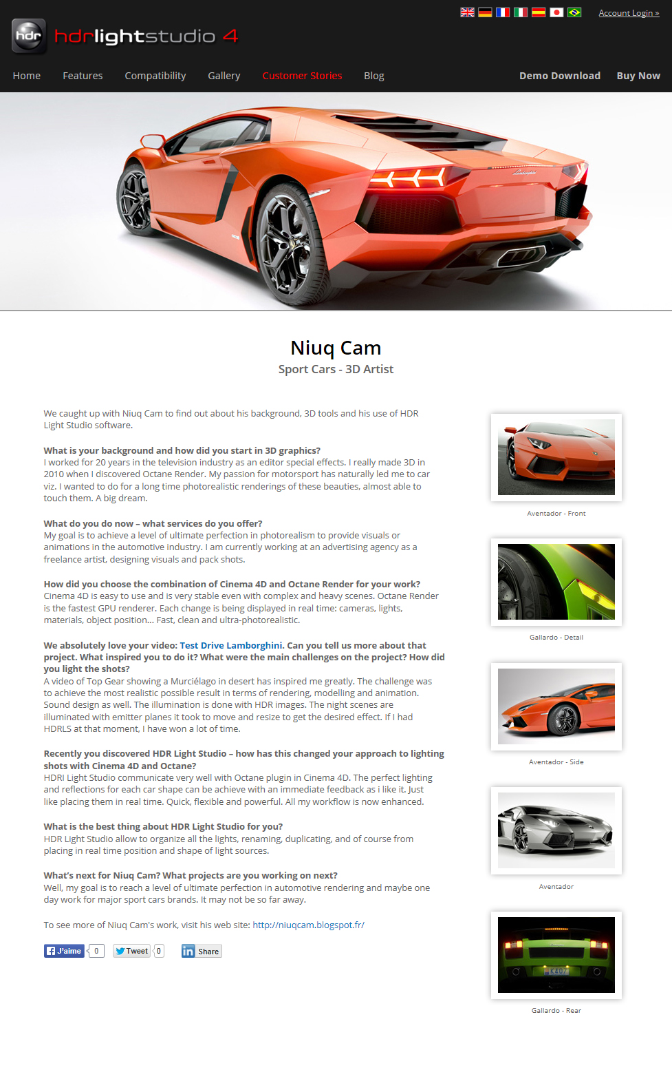 NIUQCAM SPORTCARS qui suit Octane Render depuis le début est à l'honneur